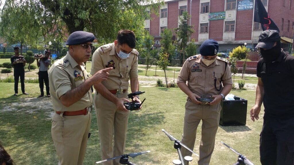 Police pressed over one dozen drones into service that made rounds across Srinagar city.