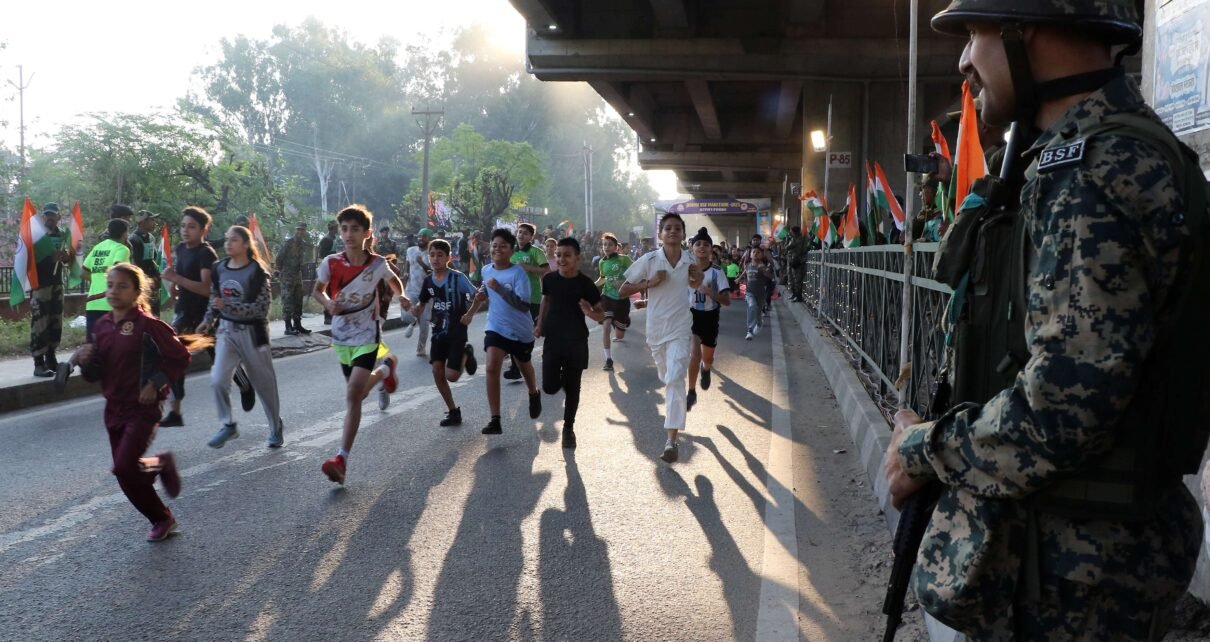 Many runners were seen holding national flags and also chanting slogans in praise of the country and the BSF.