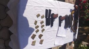 An official said that forces launched a search operation near sub-sector Pargwal of Akhnoor along the International Border and recovered AK 47 Rifle-01, AK 47 Rds- 20 Rds, Rifle Magazines:- 02, Pistol- 02 (Made in Italy), Pistol Rds- 40 Rds and Pistol Magazines- 04.