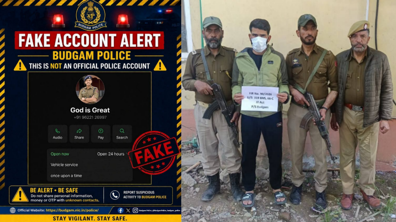 According to police, reliable information was received that Sameer Ali Bhat, son of Ghulam Muhammad Bhat, a resident of Pallar Budgam, was sharing screenshots of chats with a fake WhatsApp account impersonating SSP Budgam and portraying himself as a close aide to gain undue influence among the public.