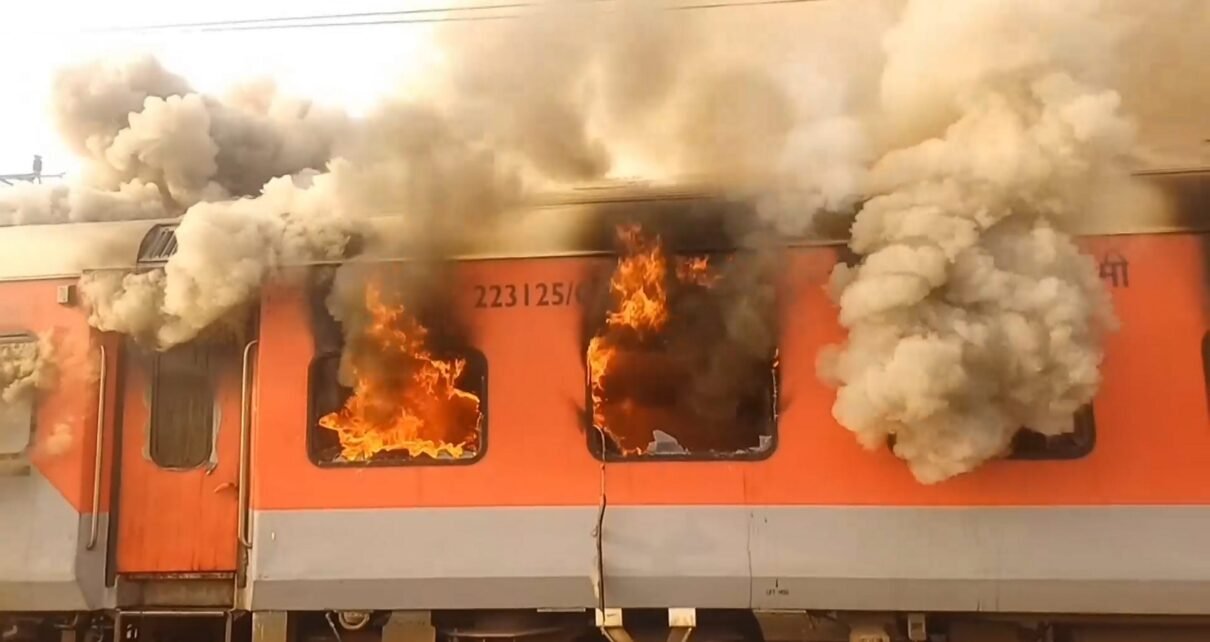 The fire erupted around 7:30 a.m. when the train (number 12204) was en route from Amritsar. A Government Railway Police (GRP) official said smoke was first noticed in one of the AC coaches.