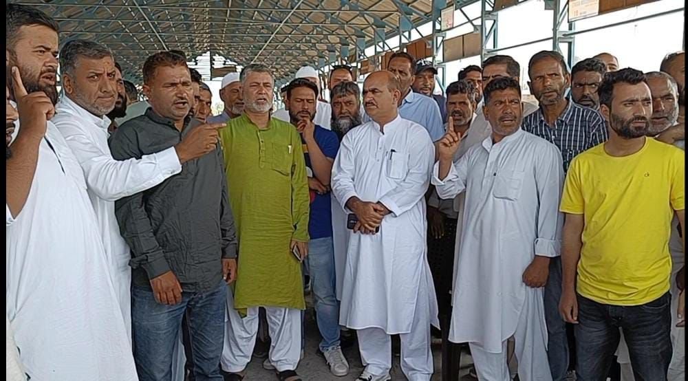SRINAGAR — Fruit growers and dealers of north Kashmir on Saturday held a peaceful protest at Fruit Mandi Sopore over stoppage of fruit-laden trucks along Srinagar-Jammu National Highway in view of the Amarnath Yatra.