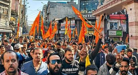 JAMMU — Right-wing Hindutva groups took out a march here on Saturday to press for the shifting of Muslim students from the Shri Mata Vaishno Devi Institute of Medical Excellence (SMVDIME) and reserving the seats in the institute for Hindus.