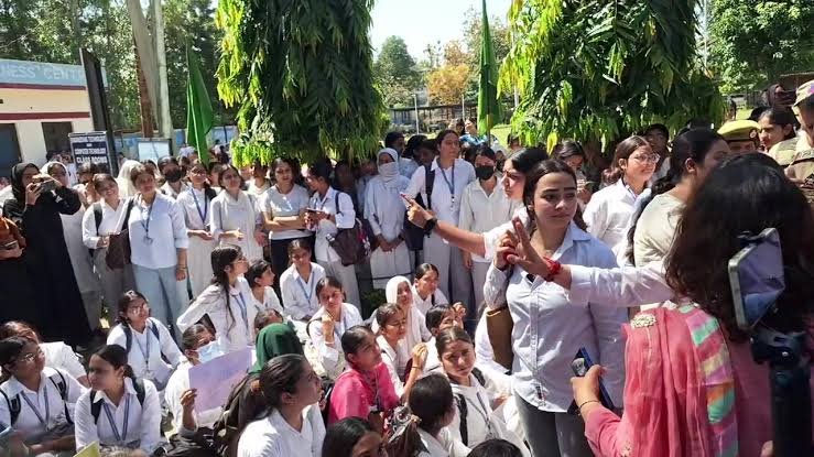 JAMMU — In the wake of a student losing her life after falling off a moving bus last week, hundreds of female students from a government college for women staged a protest in Gandhi Nagar here on Monday, demanding justice.