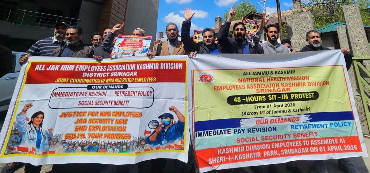 SRINAGAR — Employees working under the National Health Mission (NHM) in Jammu and Kashmir on Wednesday began a 48-hour sit-in protest to press for their demands, including the regularisation of their services, pay revision and social security benefits.