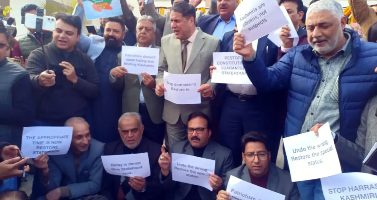 NC MLAs stage protest seeking restoration of statehood, end to ‘harassment’ of Kashmiris