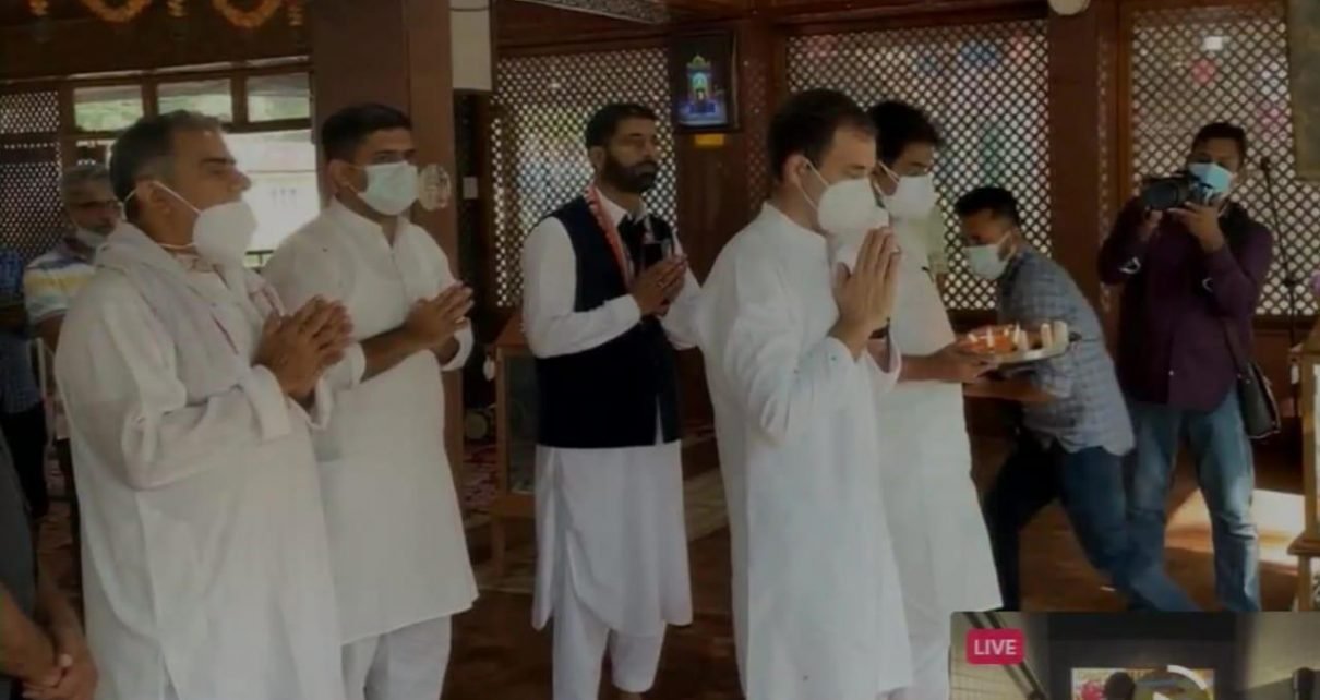 Officials told that Rahul Gandhi paid obeisance at the Mata Kheer Bhawani temple situated in the middle of a spring in Tullamulla village here.