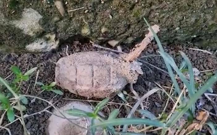 The grenade was found lying in a dried up stream by some farmers working in their fields nearby at Swankha village in Vijaypur, they said.