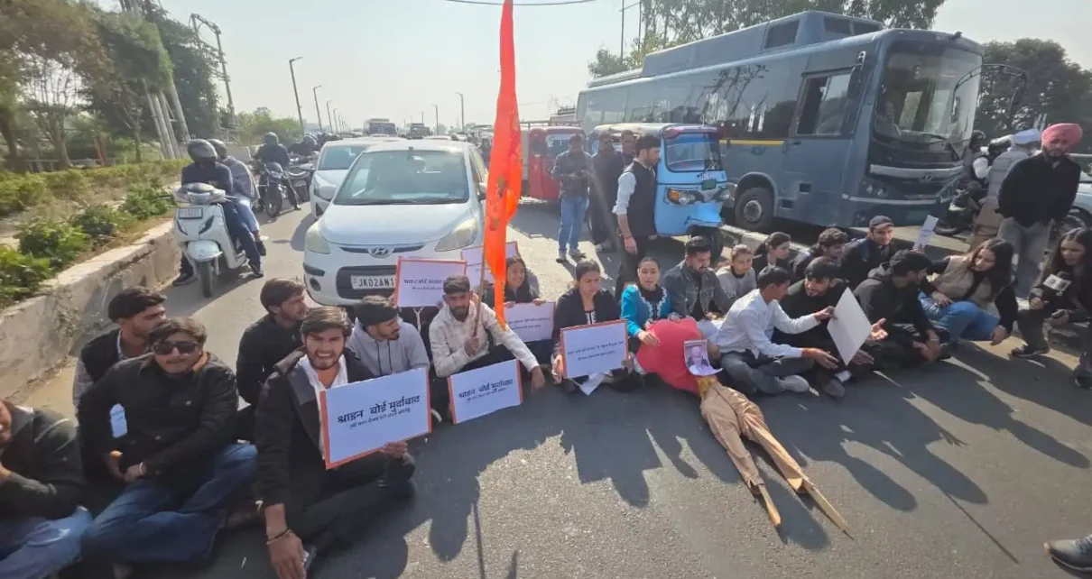 The groups, under the banner of the Shri Mata Vaishno Devi Sangharsh Samiti, took to the streets raising slogans against Chief Minister Omar Abdullah and the Shri Mata Vaishno Devi Shrine Board. Protesters also burnt an effigy of the Chief Minister.